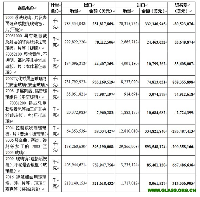 2013年1~6月玻璃進(jìn)出口統(tǒng)計(jì)