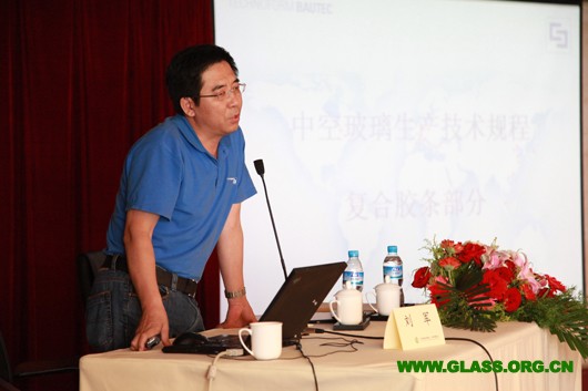 泰諾風(fēng)保泰(蘇州)隔熱材料有限公司總工劉軍對(duì)《中空玻璃生產(chǎn)技術(shù)規(guī)程》行業(yè)標(biāo)準(zhǔn)的復(fù)合膠條中空玻璃制作進(jìn)行講解