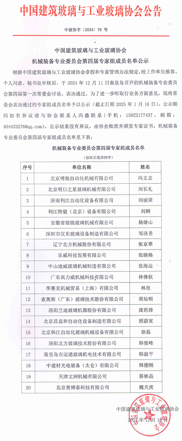 • 中空玻璃專業(yè)委員會第八屆專家組成員名單公示